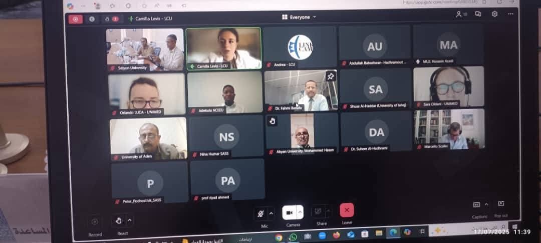 Taiz University participated in the periodic meeting of the partners of the Yemeni Higher Education towards the Development of International Cooperation Offices (YHELD) project, organized by Link Campus University in Italy on Thursday, July 17, 2025, via video conference.