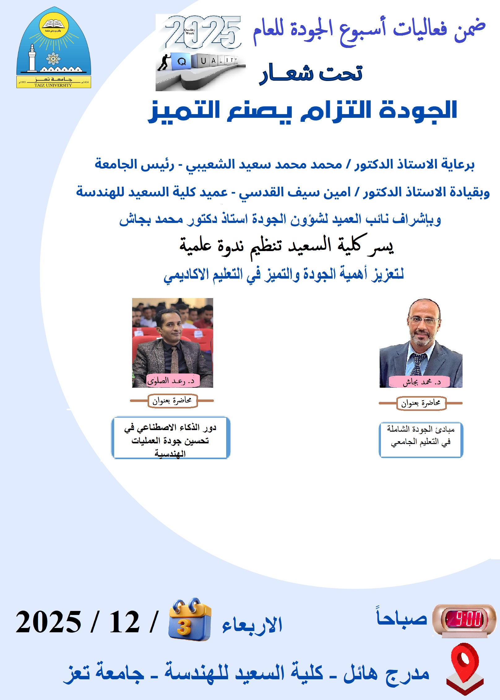 تحت شعار الجودة التزام يصنع التميز يسر كلية السعيد تنظيم ندوة علمية لتعزيز اهمية الجودة والتميز في التعليم الاكاديمي